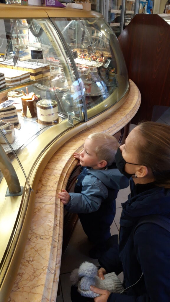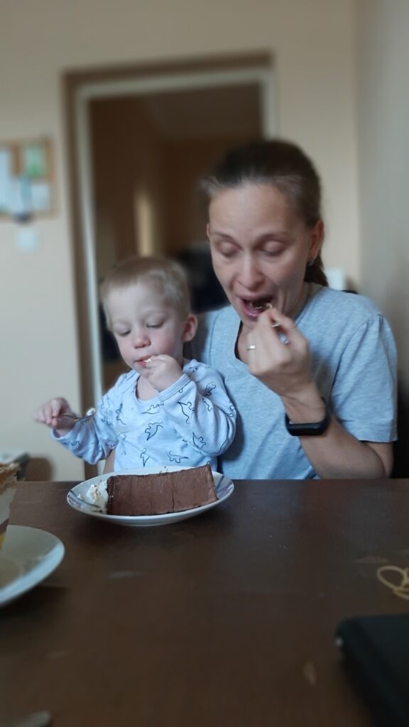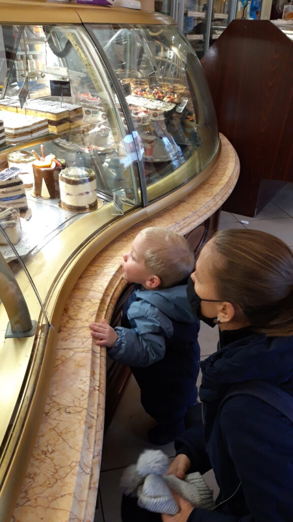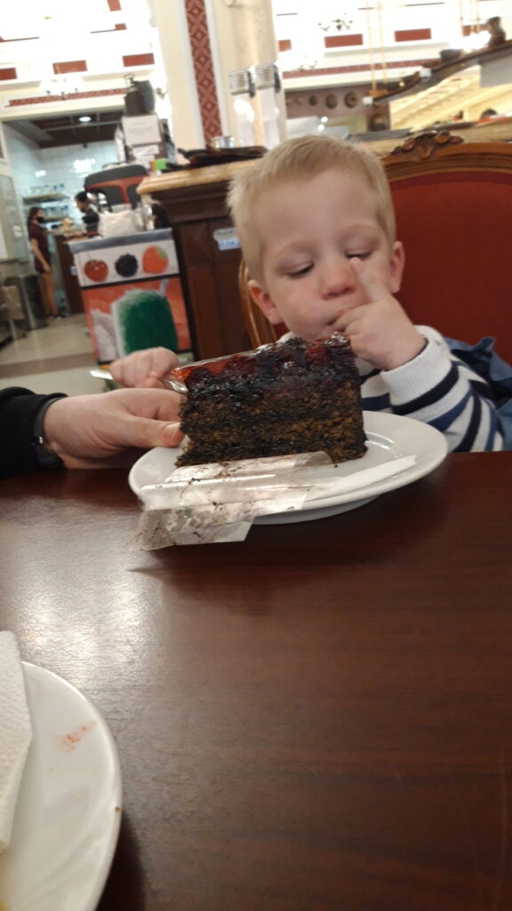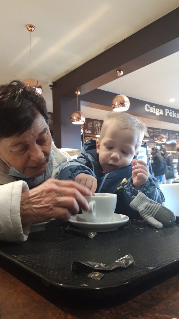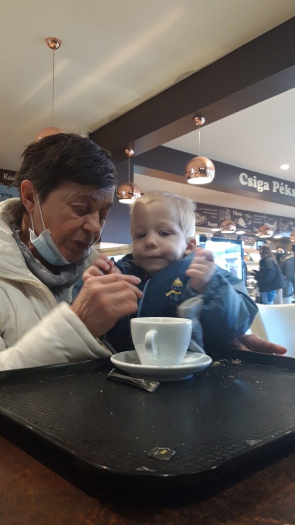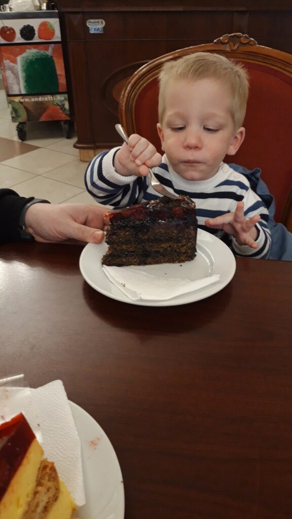 Szombaton délelött a nagynénivel és a mamival rajzfilm maratont tartottunk. Ebéd után már nem találtam meg a kis ágyamat. Állítólag Apa már elrakta a nagy verdába és a többi táskát. Egyre jobban fogytak a szobából a csomagok. A verda meg csak púposodott. Még szerencse volt külön helyem. Elköszöntünk a déditől és a Nona-tól, majd elindultunk. Apa elől űlt hátul Anya és a Mami. egy ideig követtem az eseményeket majd képszakadás volt. A követekző emlékem amikor mami elköszönt tőlem. meg is ilyedtem mert az ilyen téglás épületekről nem jó emlékem van. Hazafele elbohóckodtunk Anyával az úton. Majd megálltunk a sütemény menyországba. uhh it aztán volt ám minden.