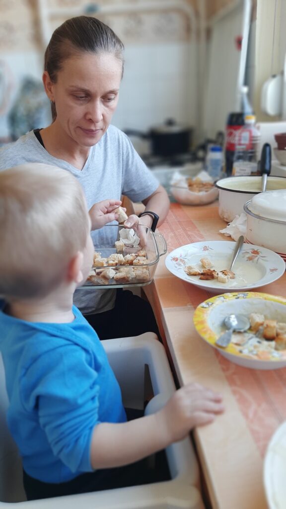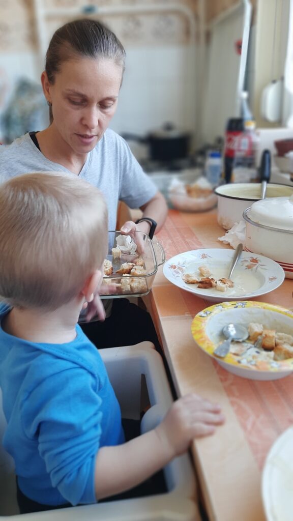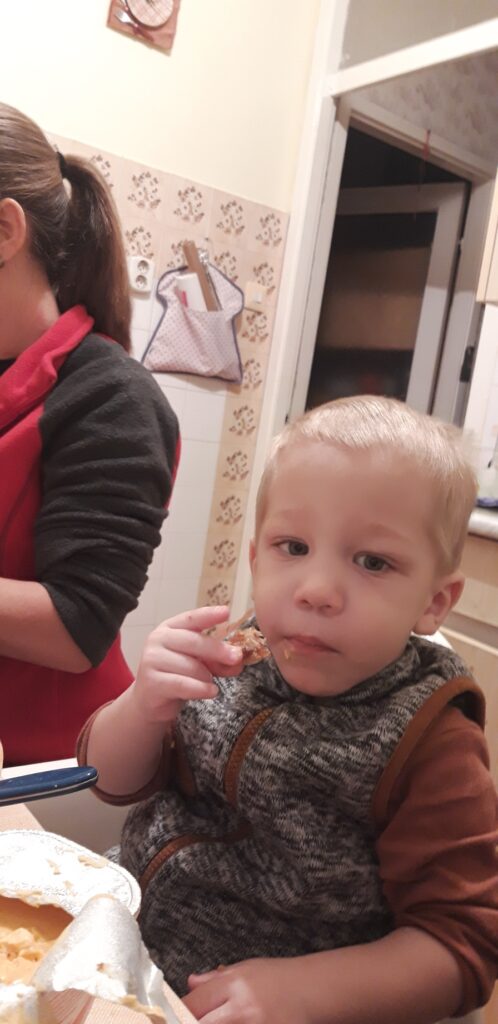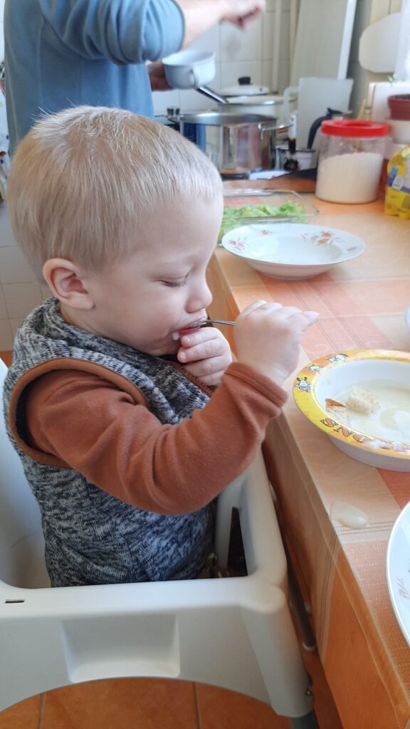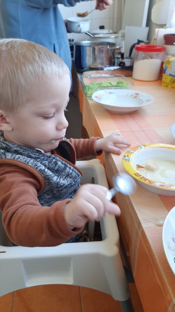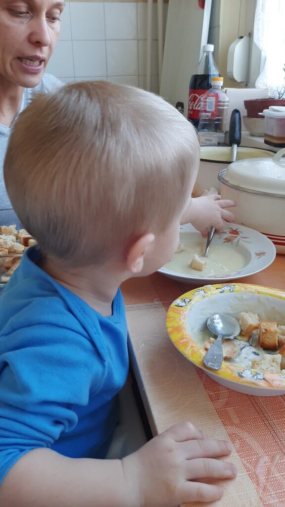 Kedden délelött nagy segítség voltam. Bedolgoztam az ebédbe. Anya készítette a karfiol krém levest. A Főételben a nagyinak adogattam a répát amit pucolni kellet, ebből lett ám a rép a főzelék. Hozzá fasírt golyókkal. Igaz nekem a krutonok jobban ízlettek mint a leves.