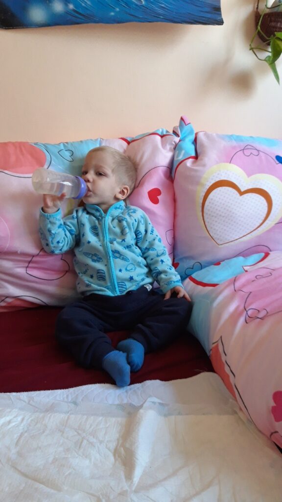 Az esti vacsoránál ügyeskedtem a cumival pont úgy tudtam letenni, hogy a karfáról nem borult le ezt többször is kipróbáltam. Este még mindíg cica mosdással mosakodtunk, de már a lábomat beletettem a vödörbe.