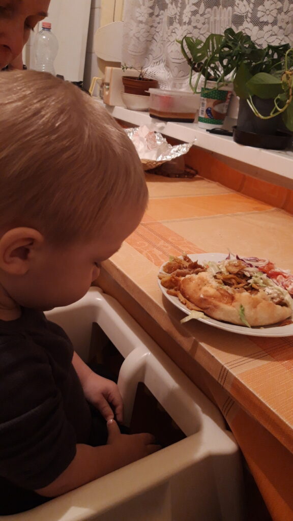 Bocs dédi de a teli pelust itthagyom én már szárazzal megyek haza. Estére egy kis séta után beszereztük a vacsorát, már régen volt pitába hús. Ízlett is.