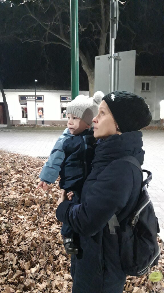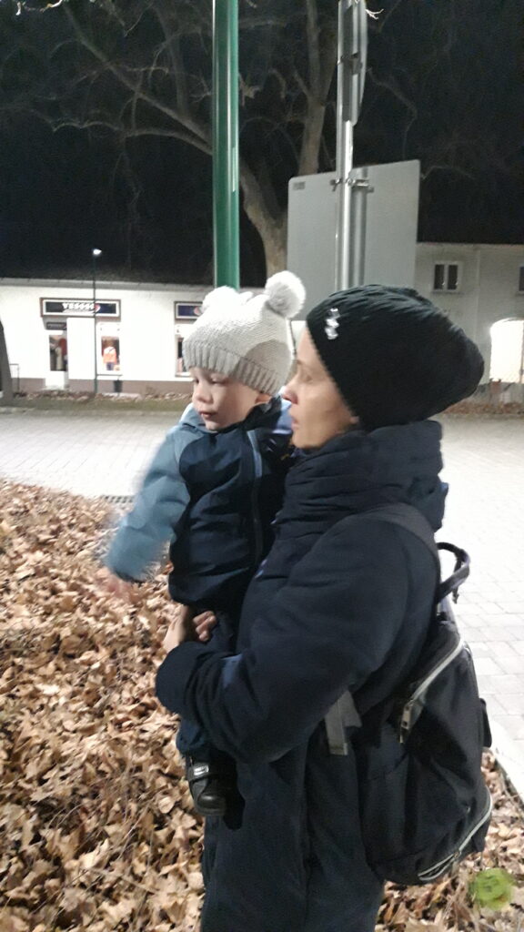 Majd Anyával és a mamival jó nagyot elsétáltunk. Volt ám látnivaló, láttunk villogós autókat.