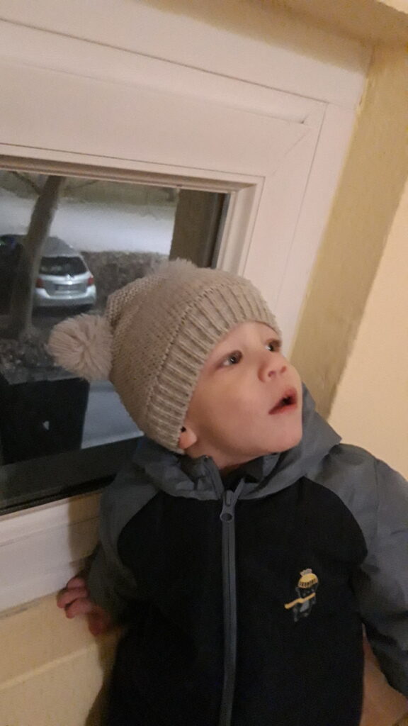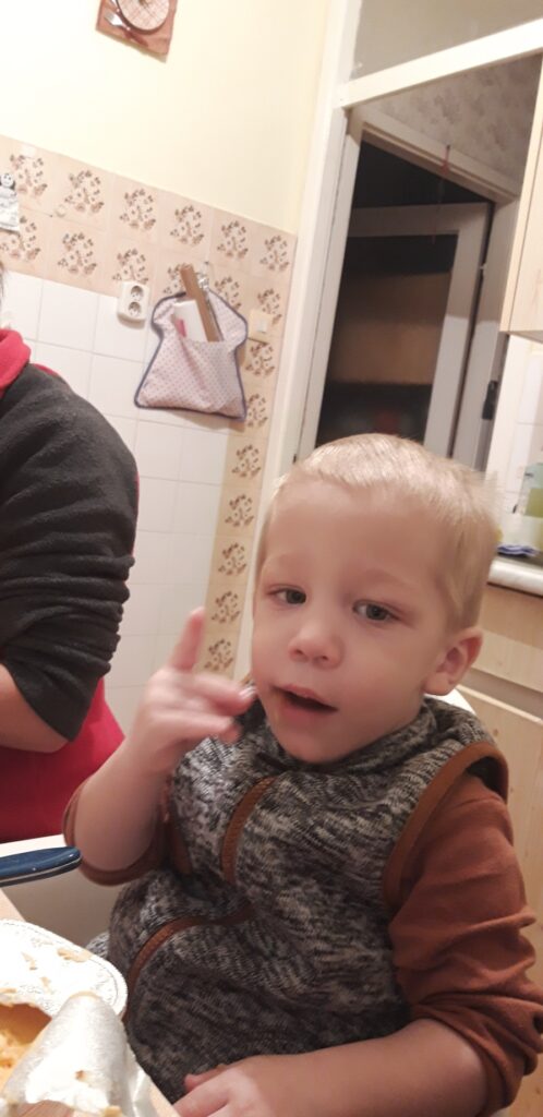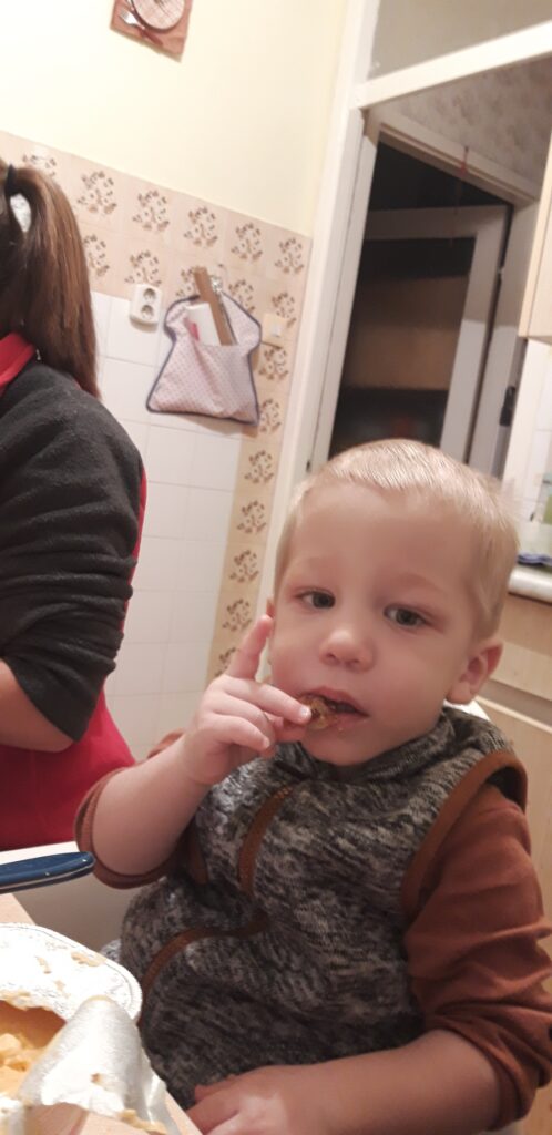 A séta közben hallottuk hogy mennek a villogós autók. Sajnos nem sikerült elcsípni őket. Visszafele amikor már nem villogva jöttek akkor integettem nekik és ők pedig vissza dudáltak. Tűzoltó autóval találkoztunk, dudáltak nekem. Az esti vacsoránál jól elropogtattam a töpörtőt és a megsütött héjját.
