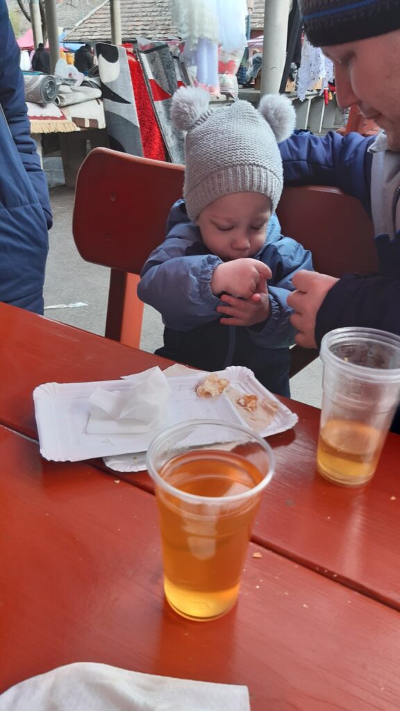 Pénteken reggel megint a piacon kezdtünk. Anya és Apa hosszú szendvicset evett, megvámoltam a reggeliüket. Sőt a nagyitól és a nagynénitől is begyűjtöttem a lángosból pár falatot.