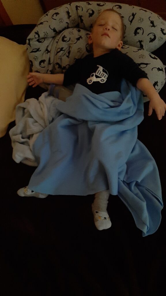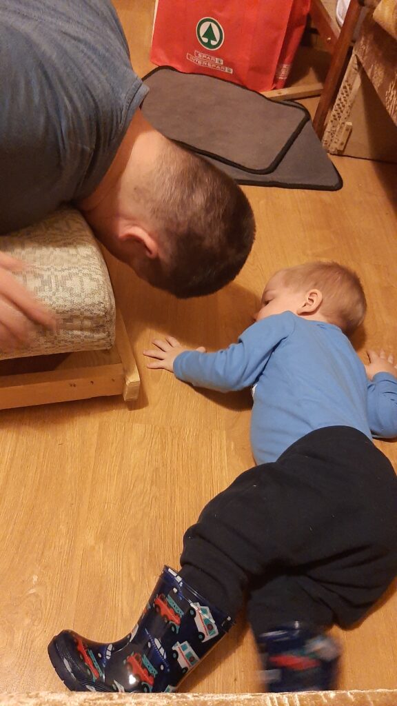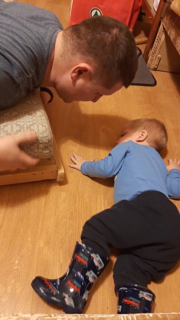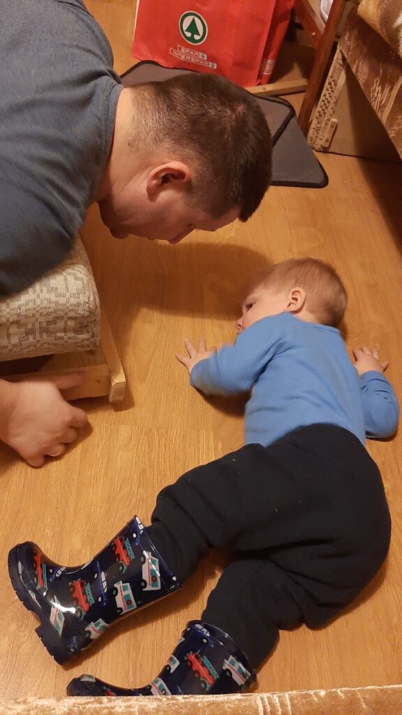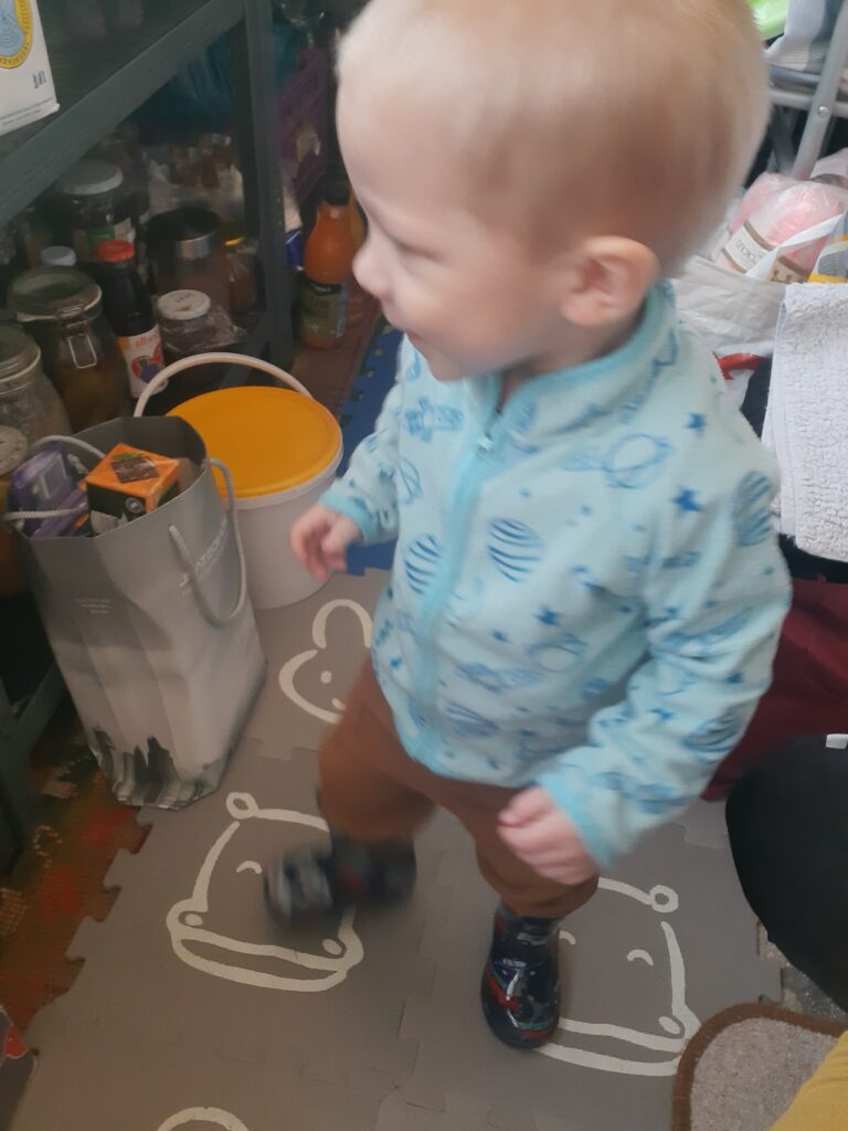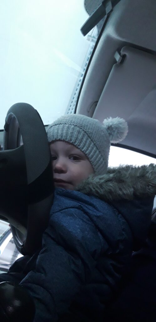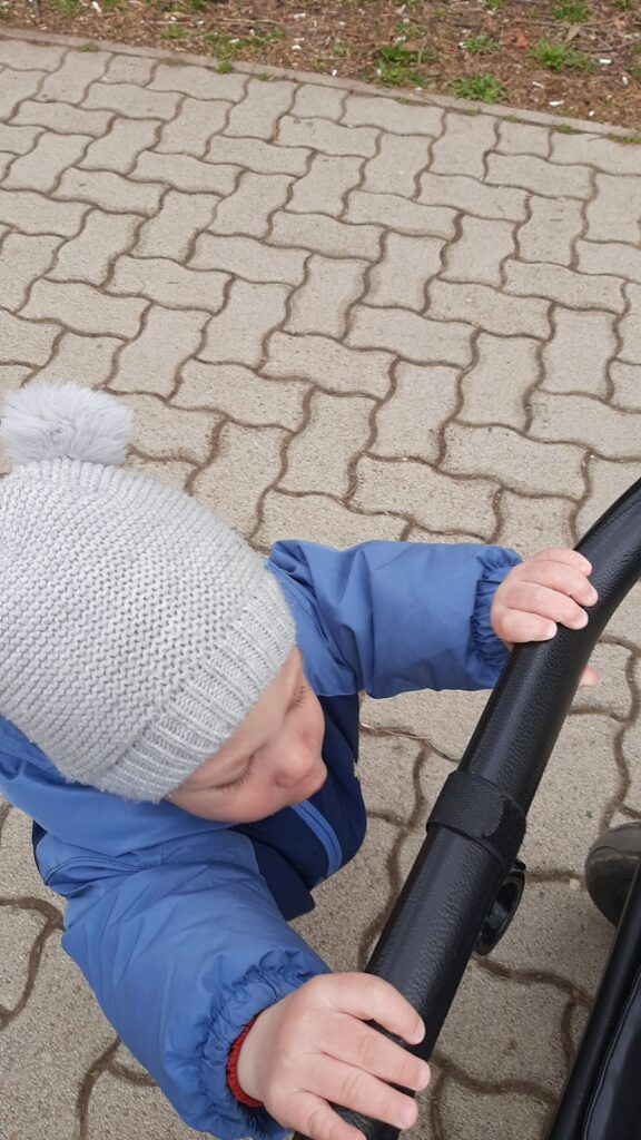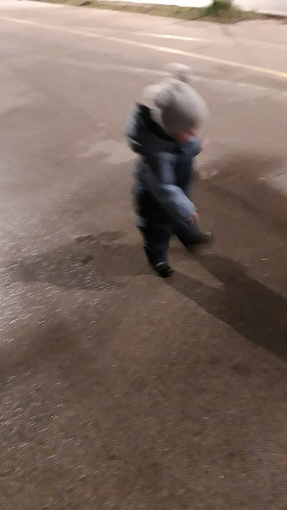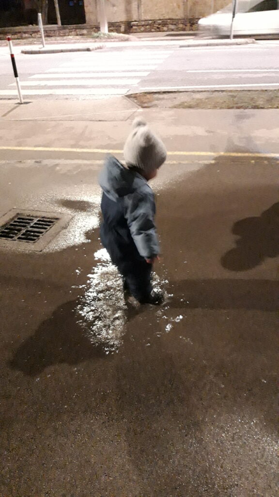 Jó nagyot ettem belőle. Majd elnyomott az álmosság. Éppen akkorra ébredtem meg mikor Apa is haza ért. Az esti sétánál meglátogattuk a bocis autót majd hazafele a tócsát is keresztül kasúl átjártam.