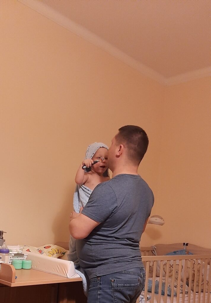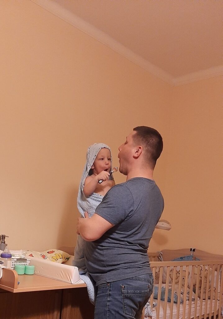 Az esti fürdeté után Apával még bohóckodtam, gyorsan megborotváltam.
