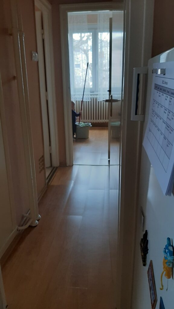 Csütörtökön aztán volt ám dolog rendesen. Reggel felébredtem gyorsan behúztam az éjszakai maradékot, így már jobban indul a nap. Reggeli után a teraszon tettünk rendet. Megleptem Anyát azzal hogy egyedül vettem fel a csizmát. Azt mondta kicsit gágog az a csizma de fenn van.