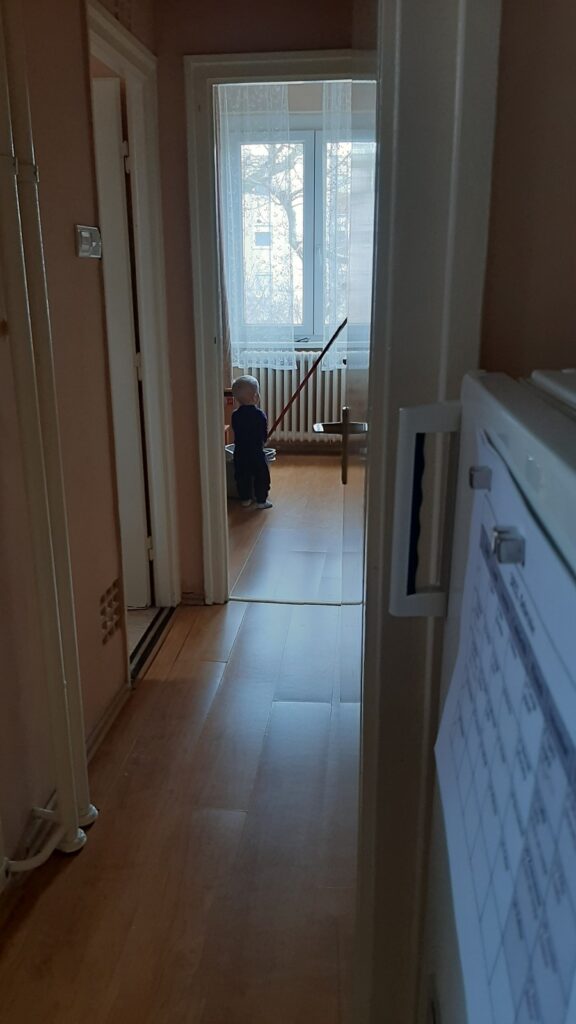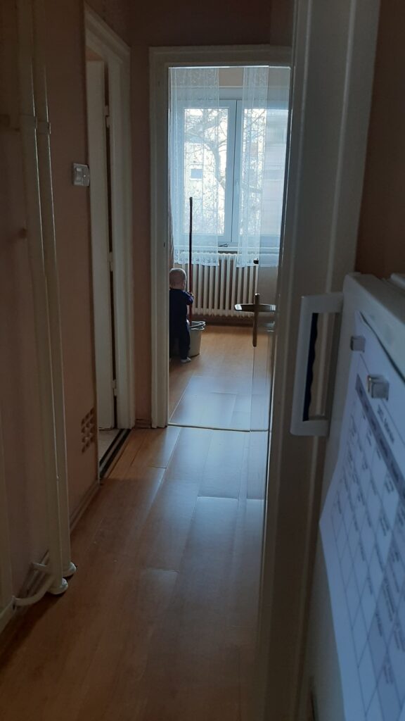 Az esti séta részeként elvittük a du-du-t a garázsba. Amíg Anya itatta a verdát addig Apával megvicceltük és rádudáltunk Anyára. Volt ám meglepetést.