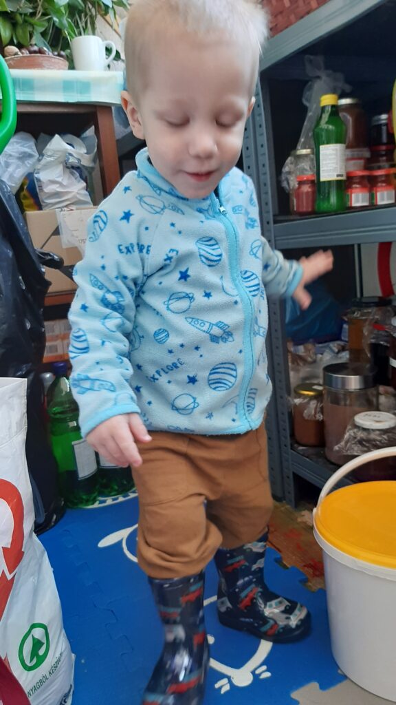 Hazafele találkoztunk Roncsi haverommal jól elmókáztam a kutyussal akit sétáltatott. Majd egy finom ebéd után jó nagy alvás. Ébredés után takarítottunk, majd ismét felpróbáltma a csizmát egyedül. Állítólag még hápóg de alakul már.