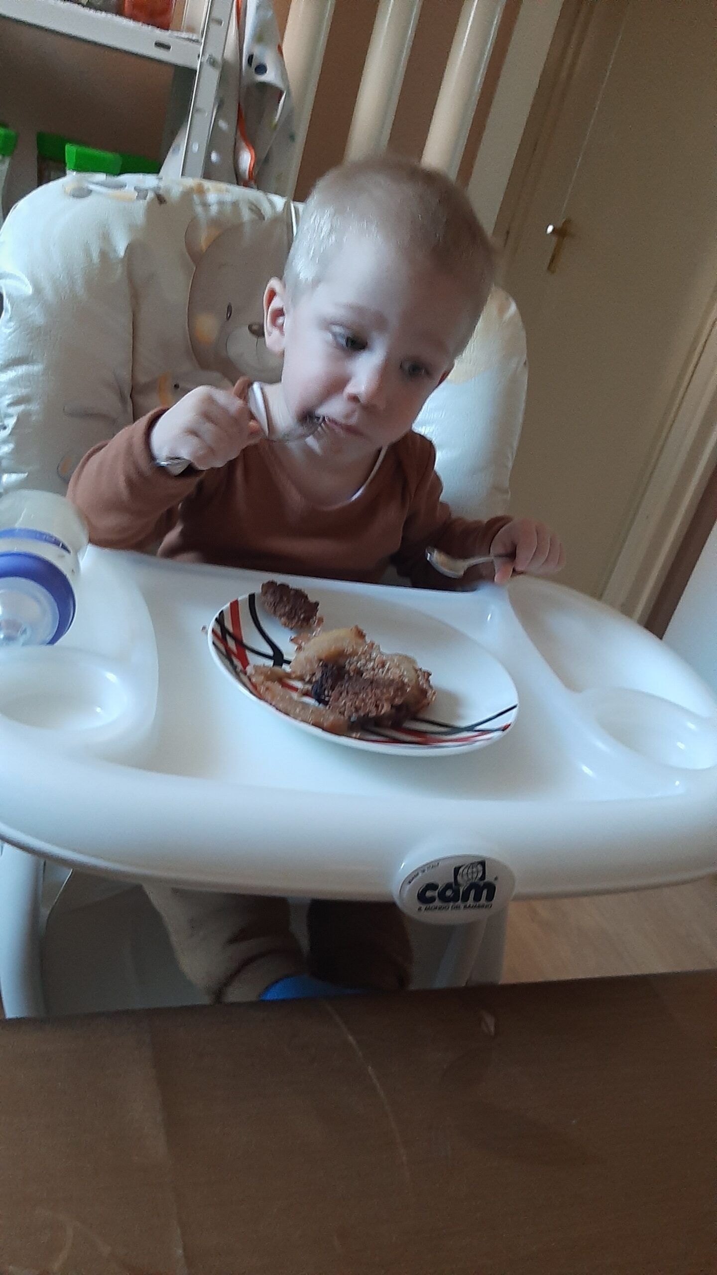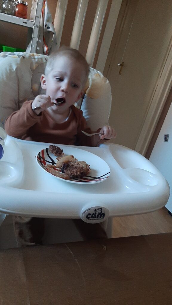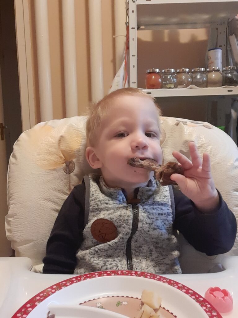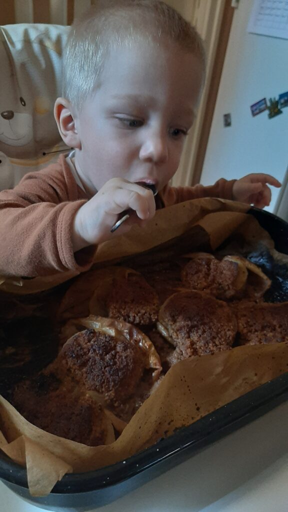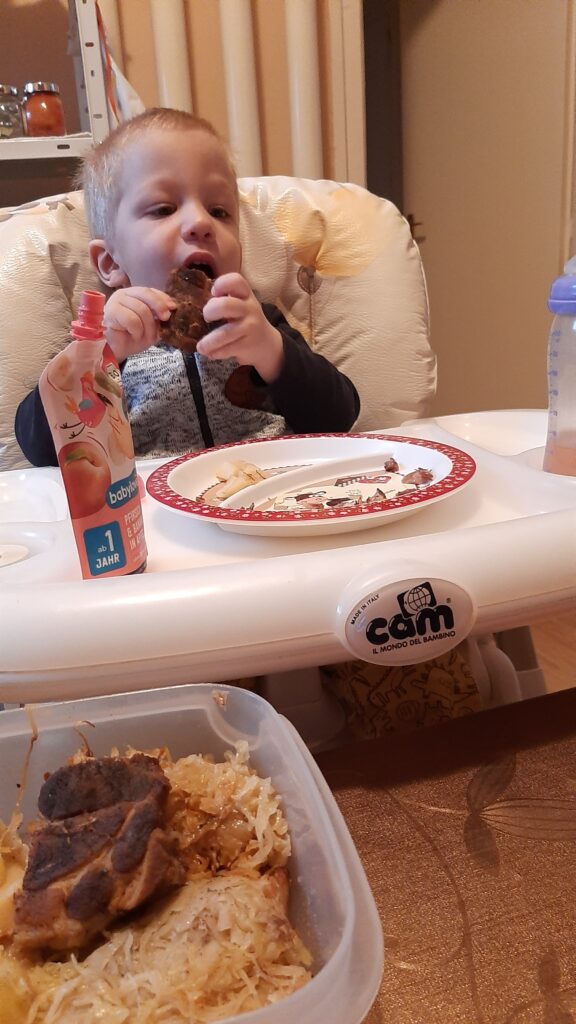 A segítésem nem állt meg itt az ebéd előkészületeinél és az elkészültek kostolásában is segítettem. Uzsonnára be is ficcent egy jó nagy adag husi és némi sült alma.