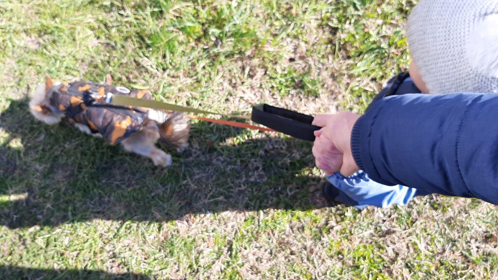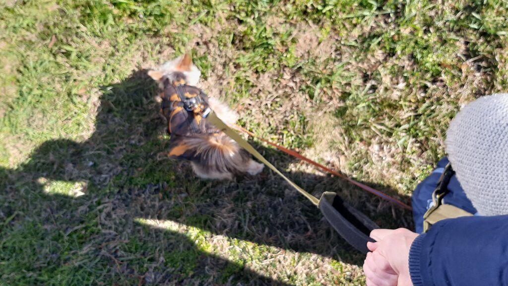 Pénteken volt ám történés. még szerencse hajnalban bedobtam a cumim teljes tartalmát így bírtam tartani a lépést az eseményekkel. Délelött a szomszédtól kaptunk egy nekem tetsző feladatot le kellett vinni a kutyus sétálni. Úgy alakult, hogy Anya is és én is vittem pórázon a kutyust.