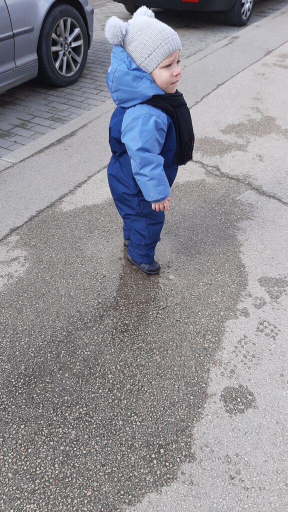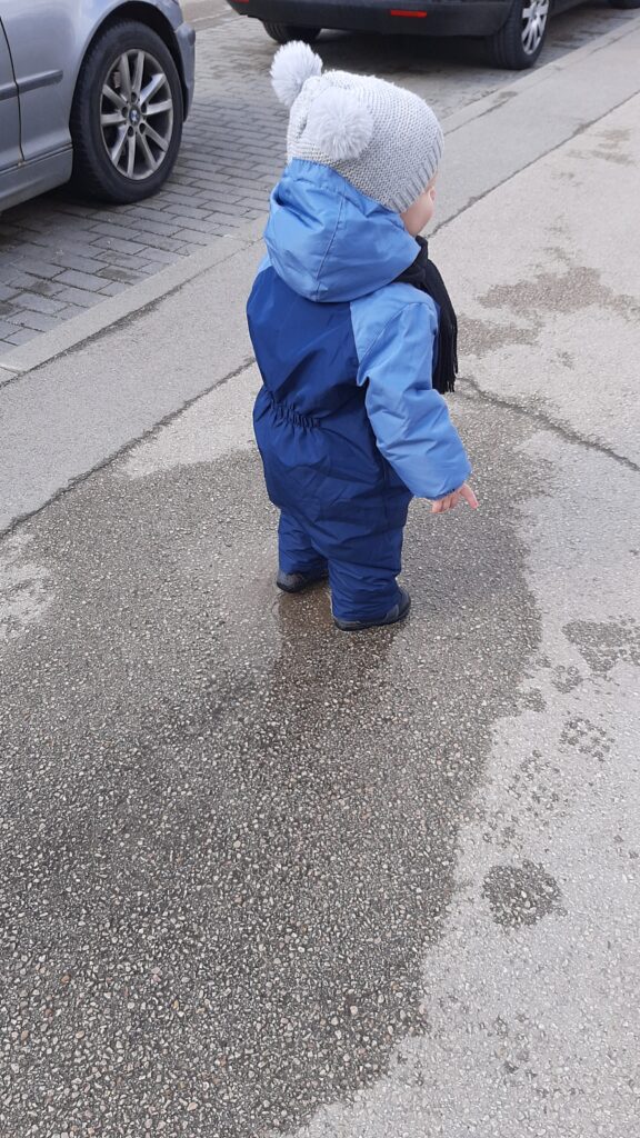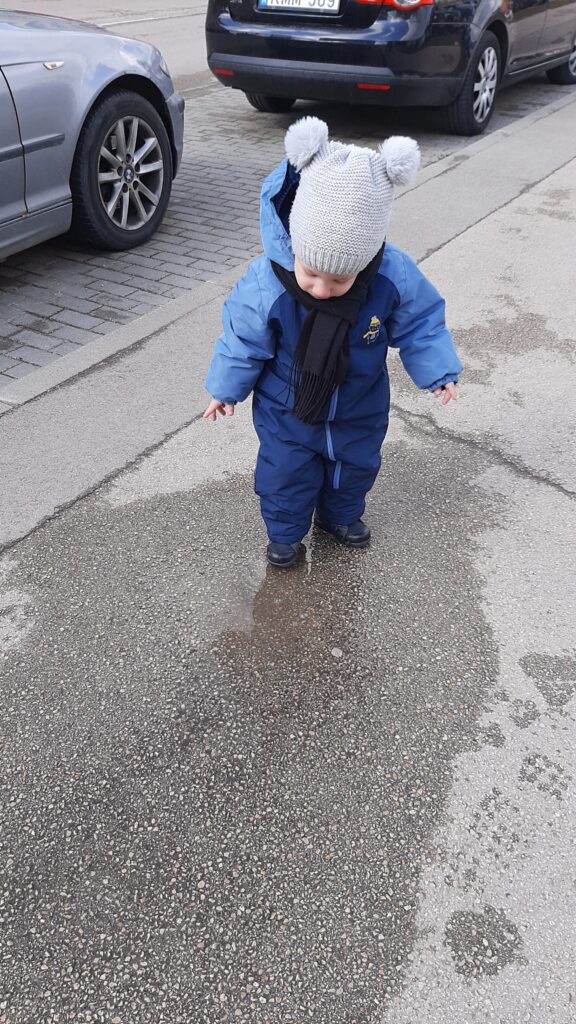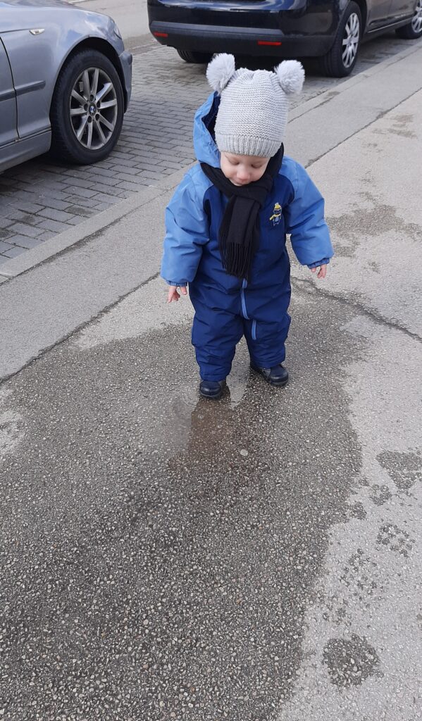 Hétfőn délelött nagyot sétáltunk majd hazafele belecsaptam a pocsolyába.