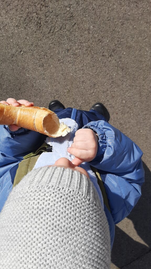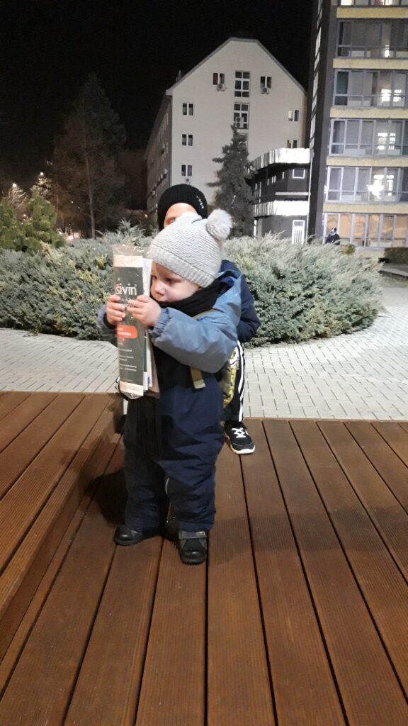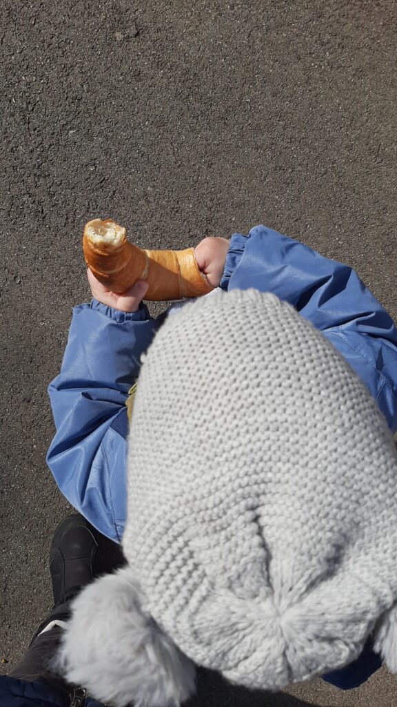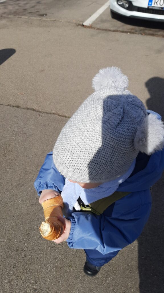 Szerdán délelött jó nagyot sétáltunk, be is szerezünk minden szükségeset. Kenyér és persze nekem a délelött indító kifli.