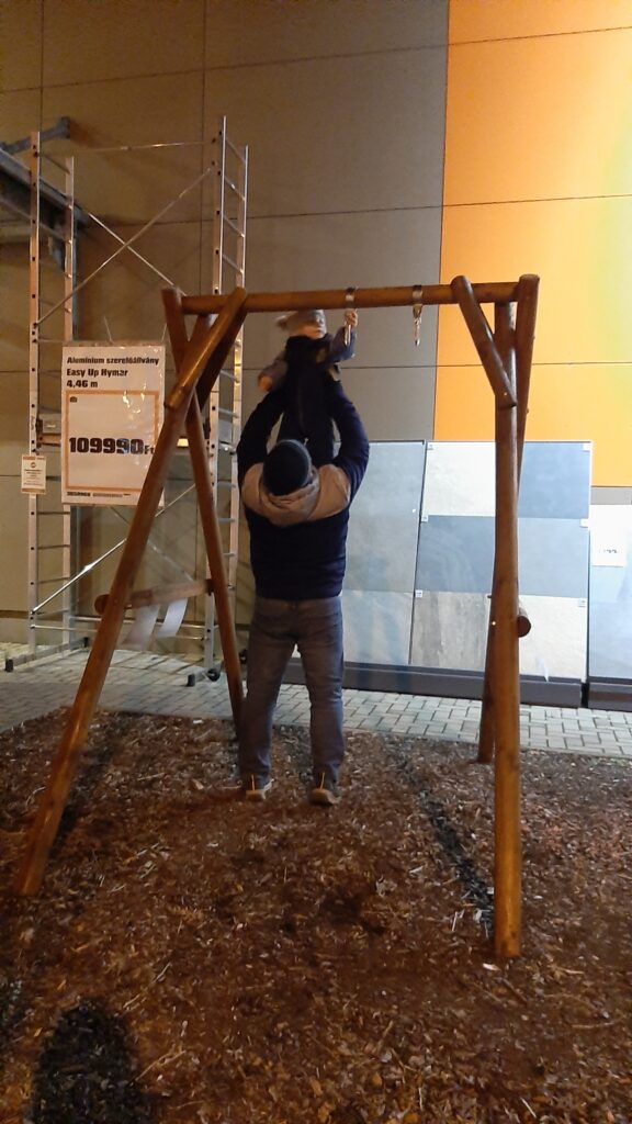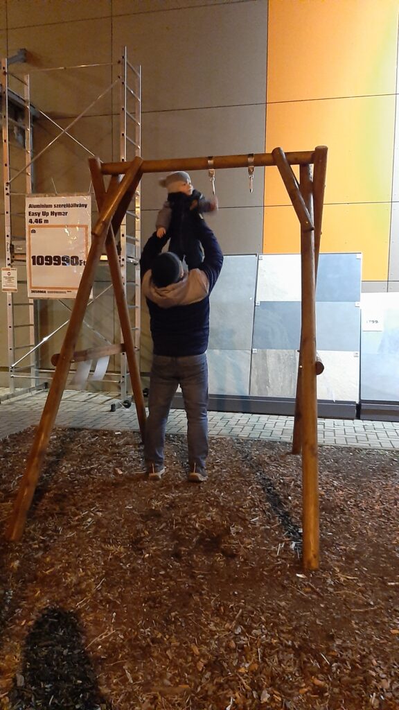 Volt ám muri megmutattam mindenkinek a játékaimat. Majd miután hazamentek a többiek mi is elindultunk ügyeket intézni. A nagy betonos sétáló úton mentünk egyik oldalt anya másikon Apa én pedig legfelül. Amígy Anya bevásásrolt addig Apával körbenéztünk a barkács boltban. Majd a kihejezett nyútózón is edzettünk.