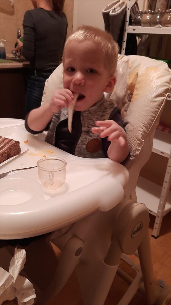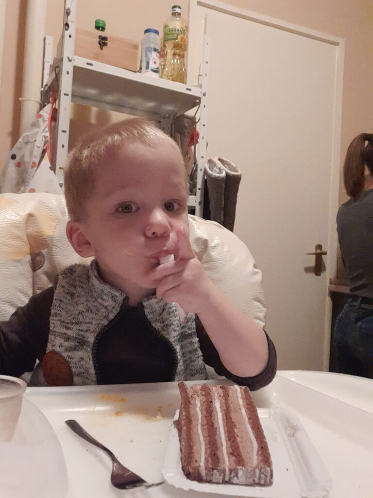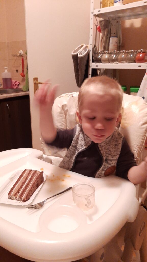 Hazaérve a vacsoránál előkerült a torta is. Na nekem se kellett több a borítást le is szedtem róla, egész éjszakára meg volt az energia ellátásom.