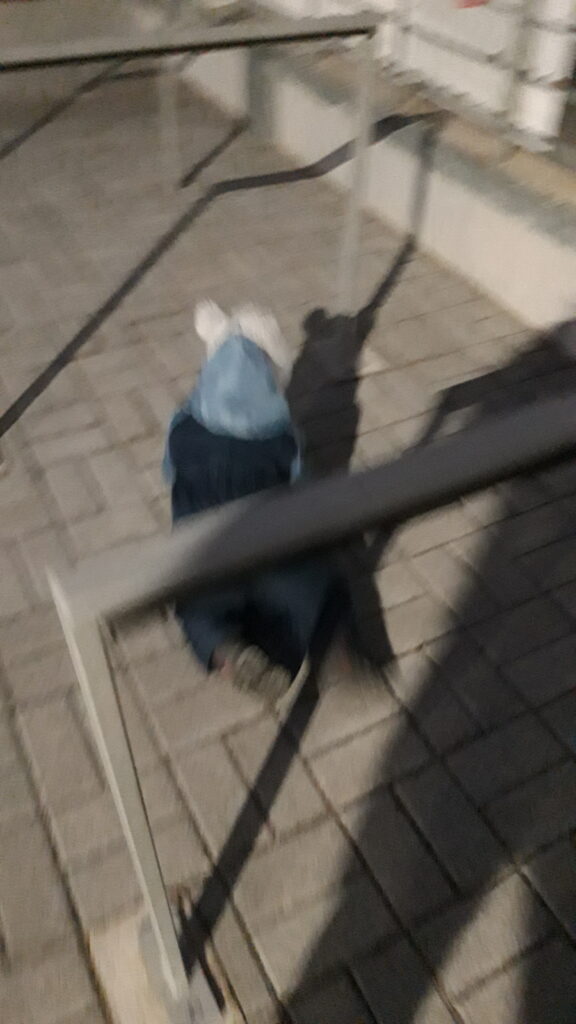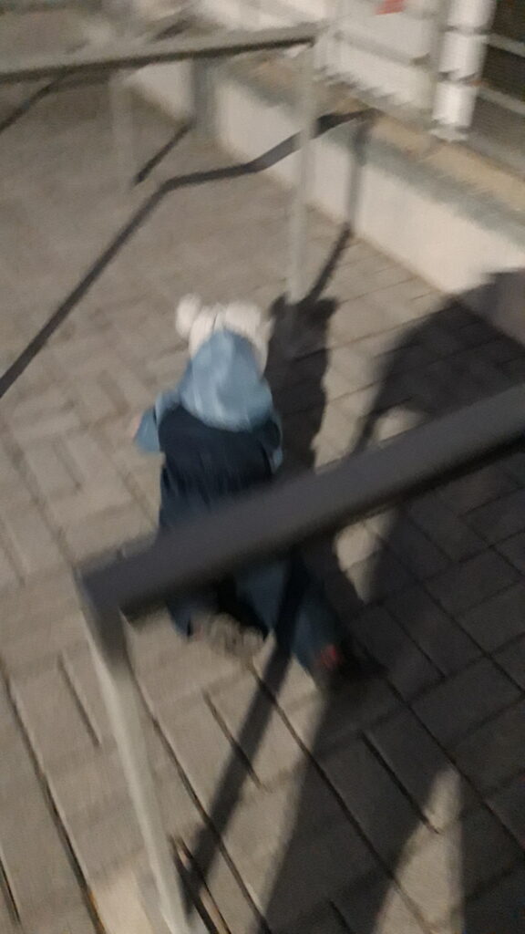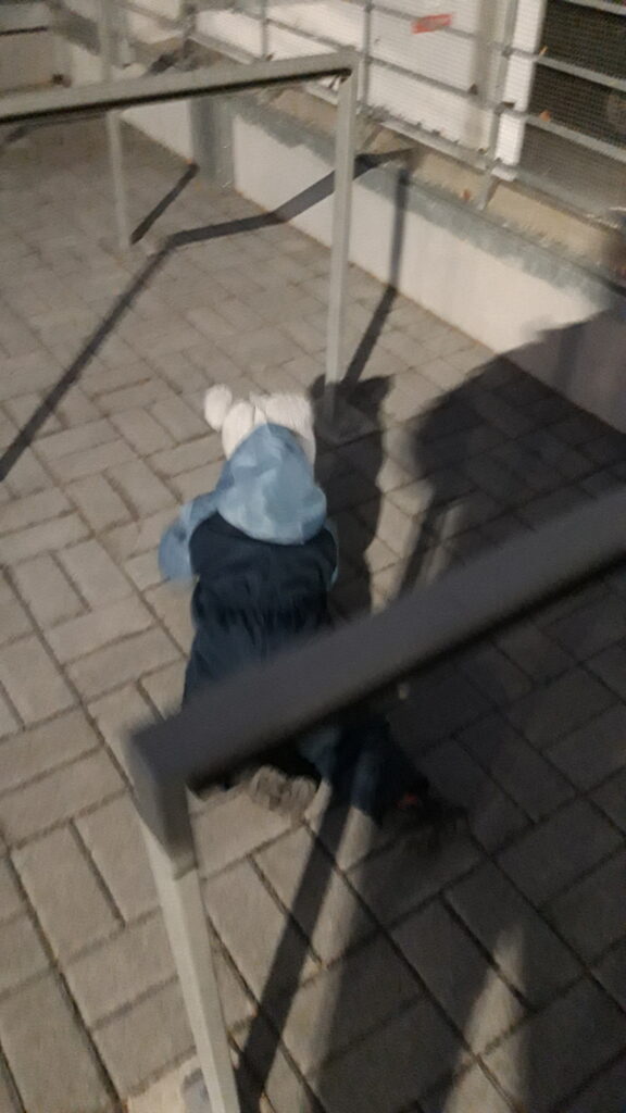Viszont mikor már felhúztam a saját nyúlcipőmet akkor már nem volt gond. Hazafele megnéztük a cicákat az erkélyen.