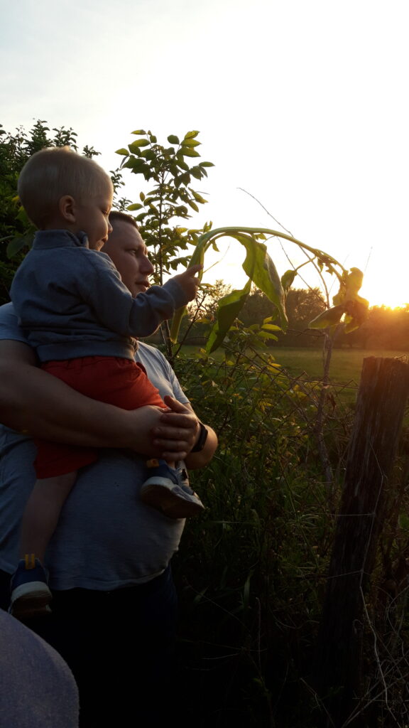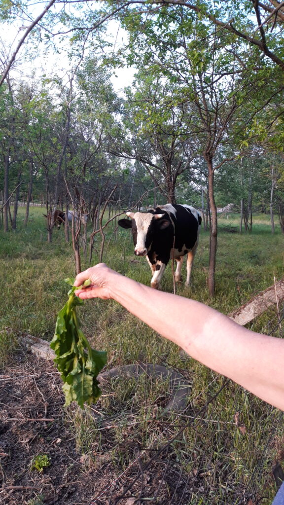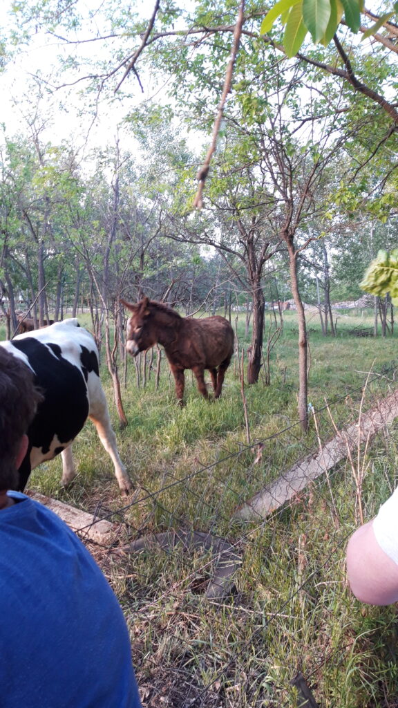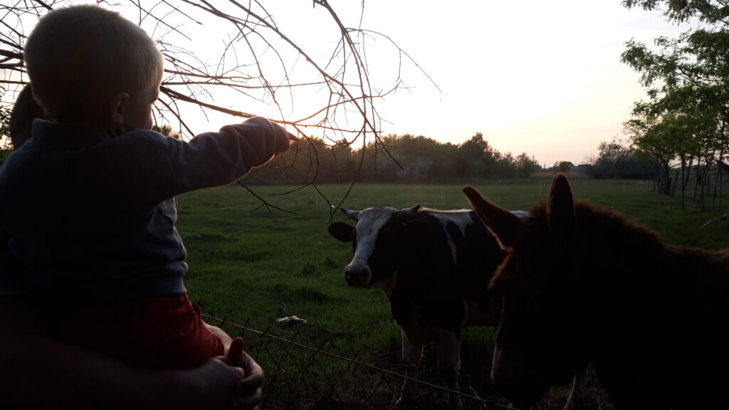 Még tartott a cukorból kapott lendületem így elmentünk a nagyi házához, körbenéztem a birtokon mi van ott, majd oda édesgettük a szomszéd bu-kat és a csacsit is. Jöttek is mert ízlett nekik a friss répa levél. Én dobáltam is át nekik.