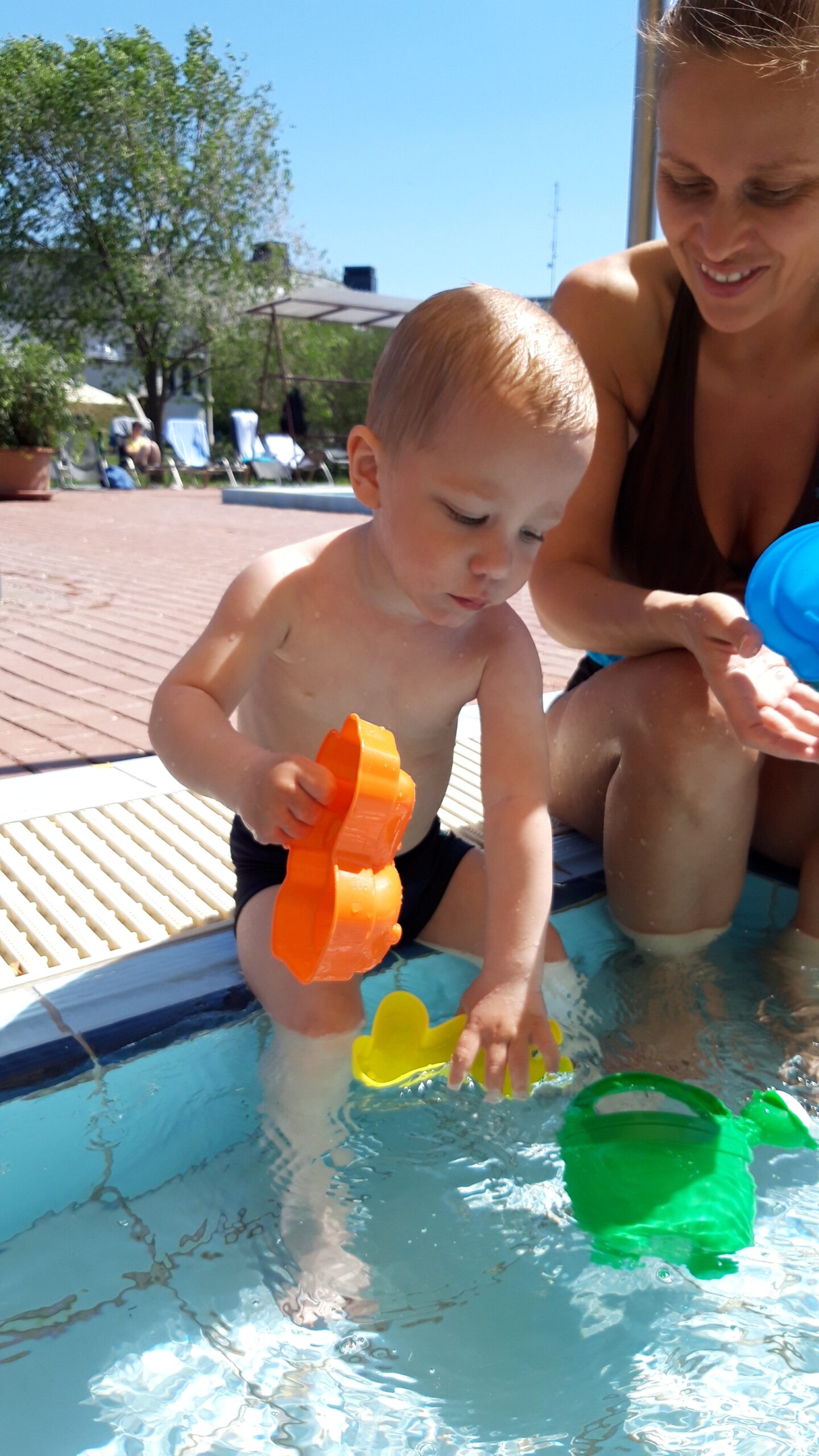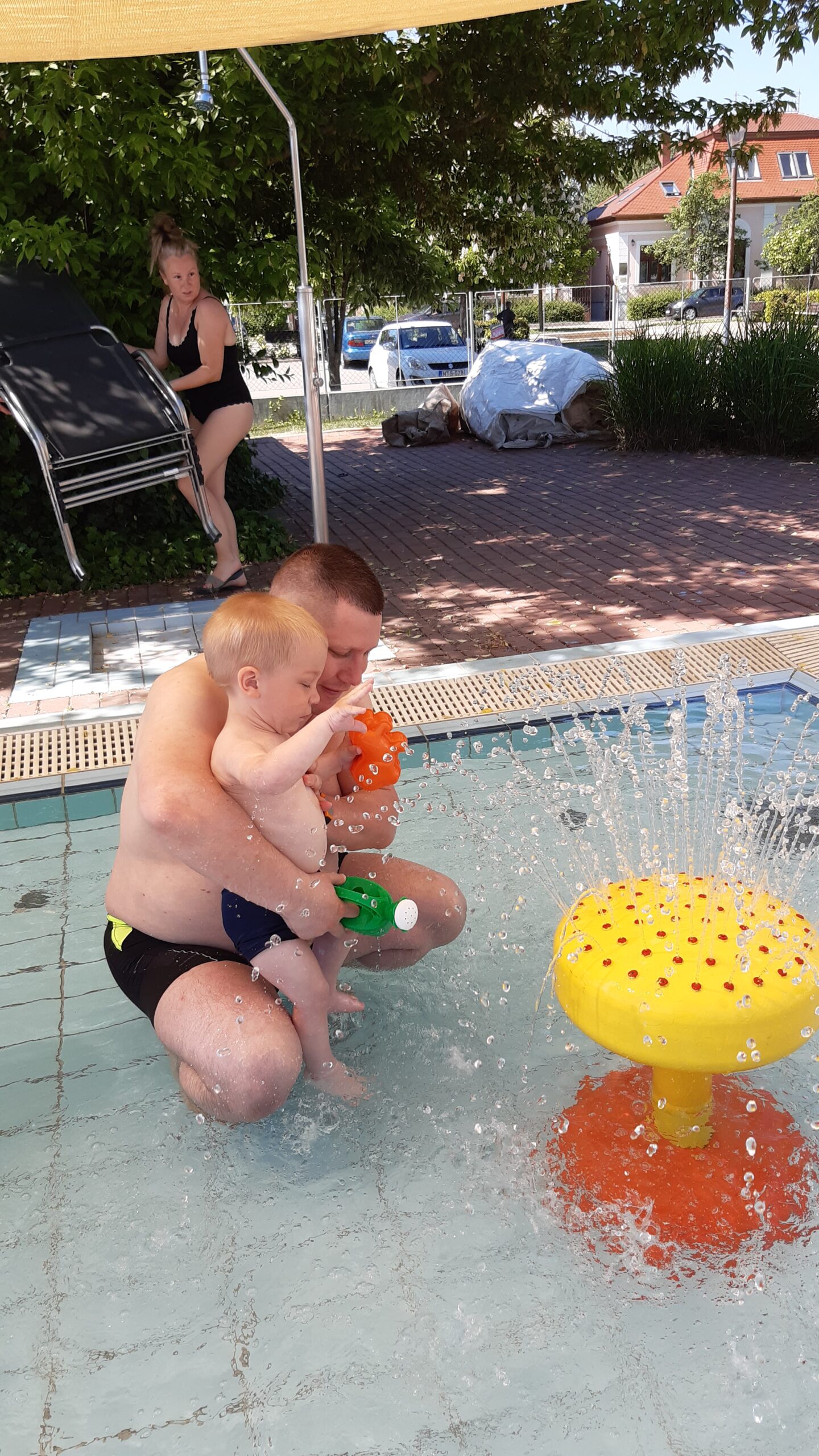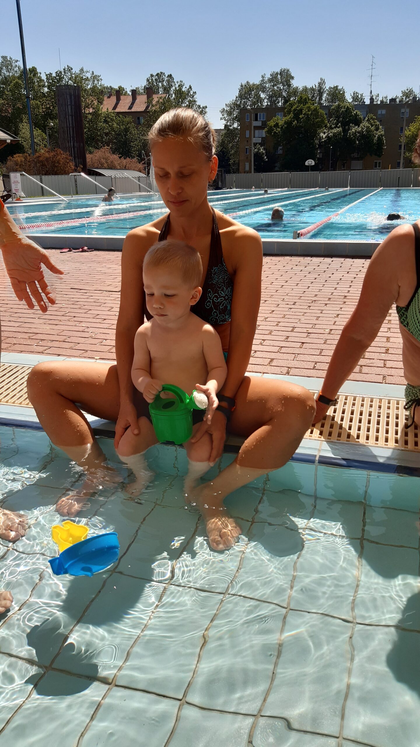 Ébredés után még újabb pancsolásra neveztem be majd. Zárás elött hazamentünk. A nagyinál már nem sok erőm maradt csak gyorsan vacsora majd után alvás, de már a fürdésnél is kifogytak a duracell elemeim.