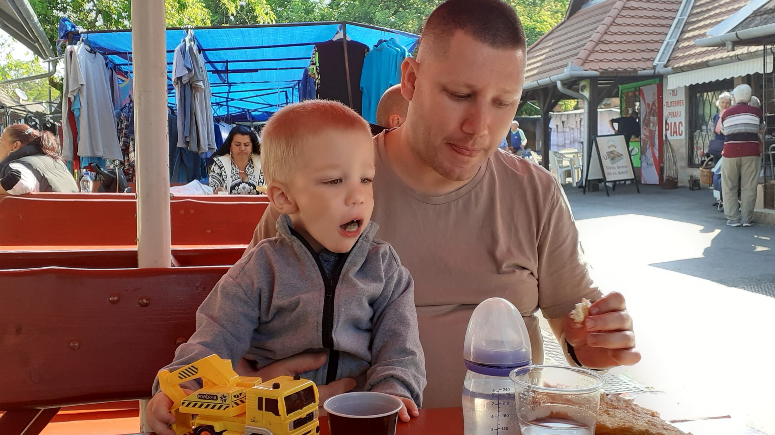 Visszaérve nagyon készültek a szülők Apa jó párszor eltűnt a csomagokkal. Indulás után a dédinél álltunk meg, majd ismét útnak indultunk. nemsokára megálltunk nénikkel bandáztam, ahol sok fényes ékszert nézhettem meg. Hazafele megálltunk ismét ebédelni.