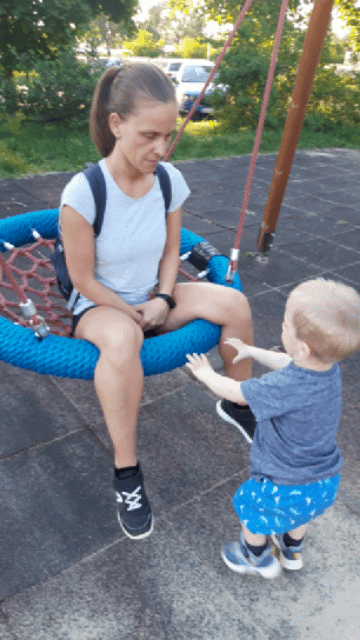 A séta közben szembejött egy játszótér. Anyát meghintáztattam.