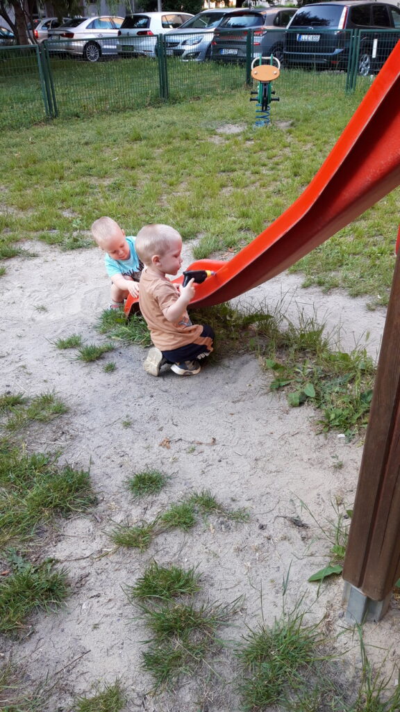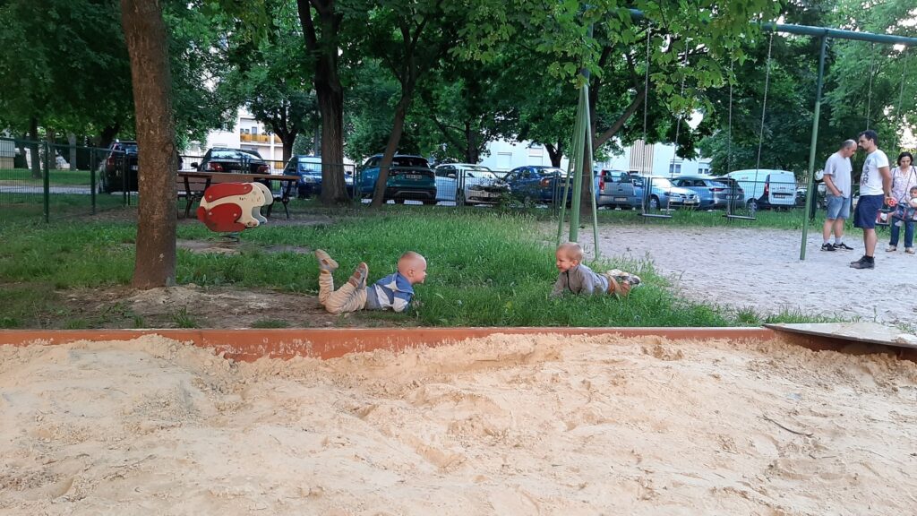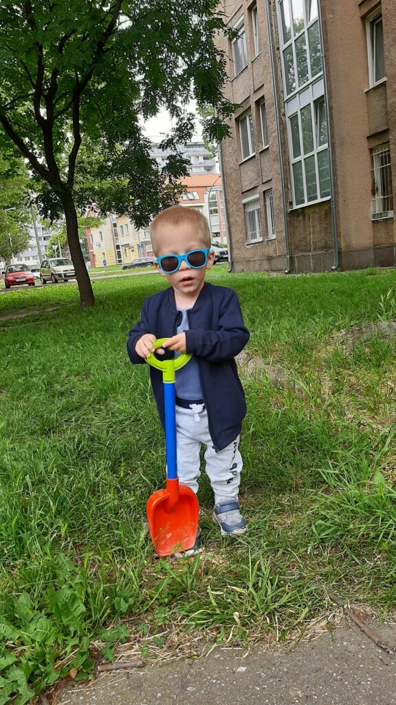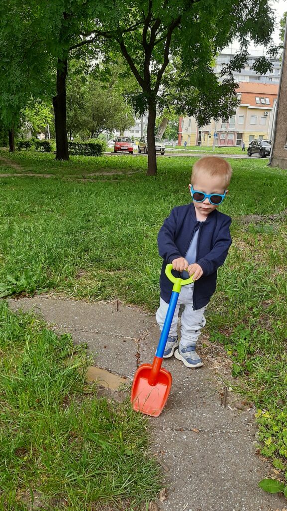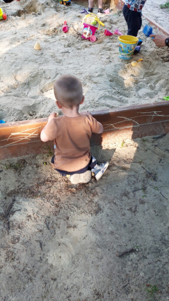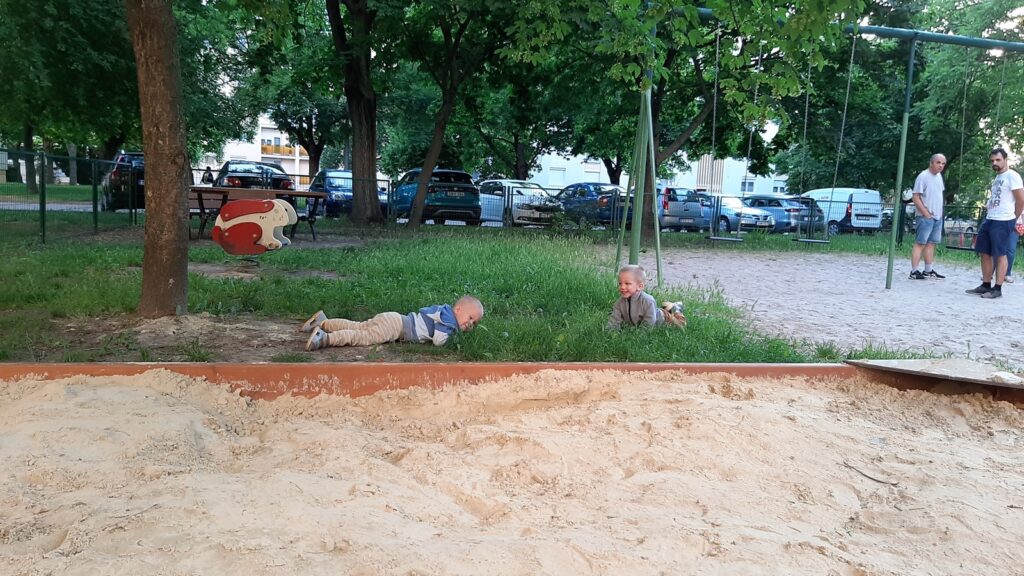 Hétfő délelött lementünk a játszótérre. Nagy munkába voltam, mert szerettem volna felásni a homokzót.