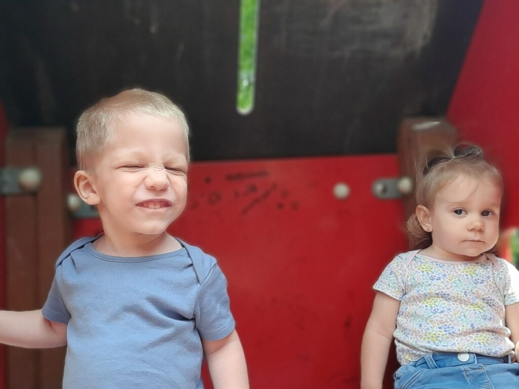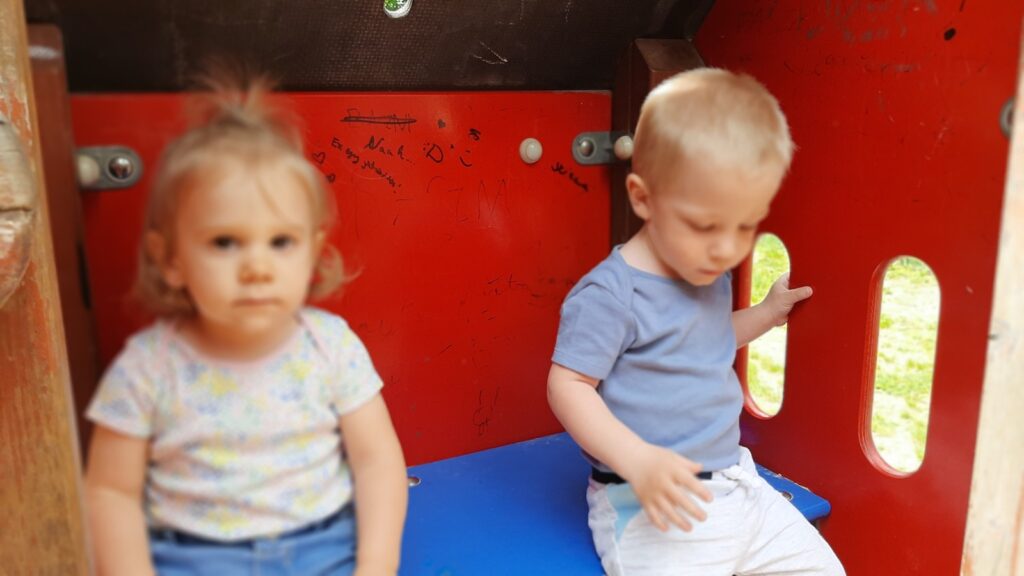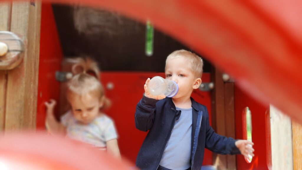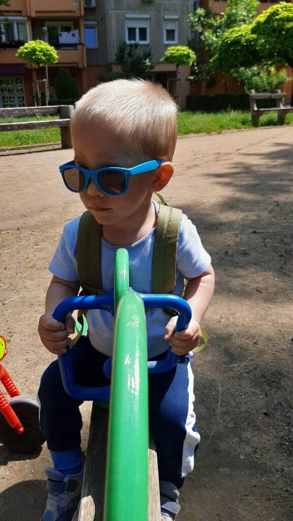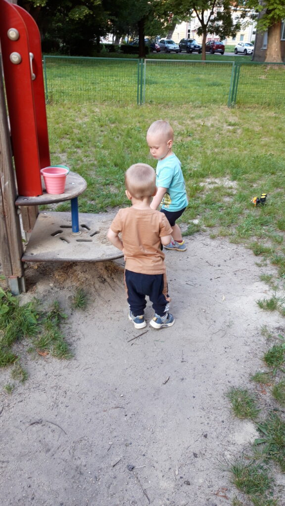 Délutáni alvás után roncsi haverommal bandáztunk a játszótéren, majd mikor szomjas lettem megoldotta az almalé ivást szívószál nélkül is.