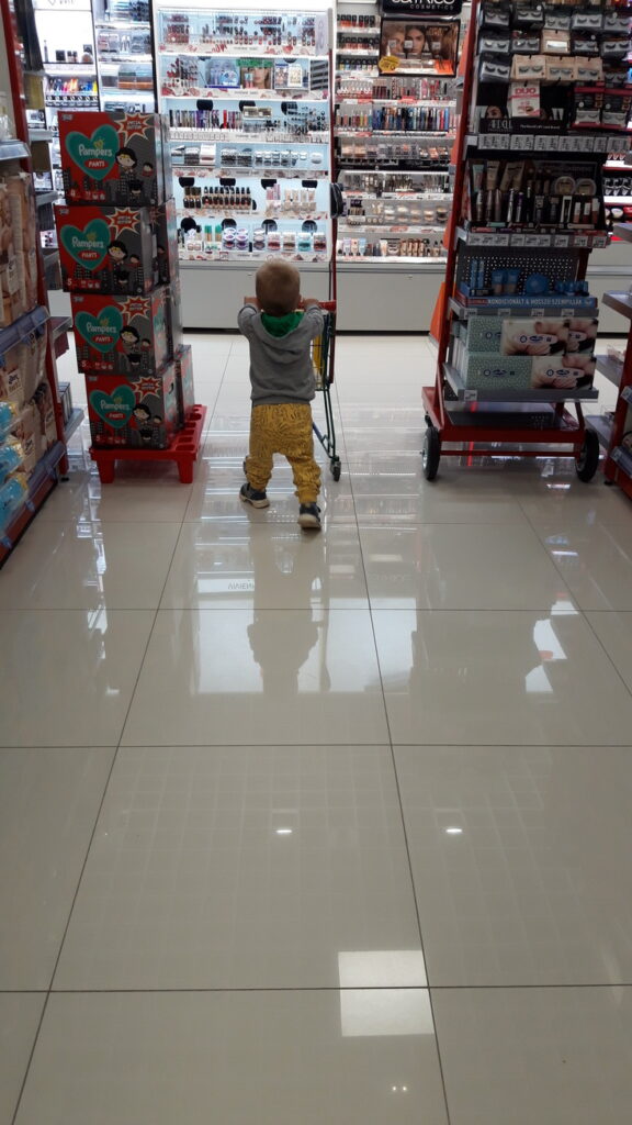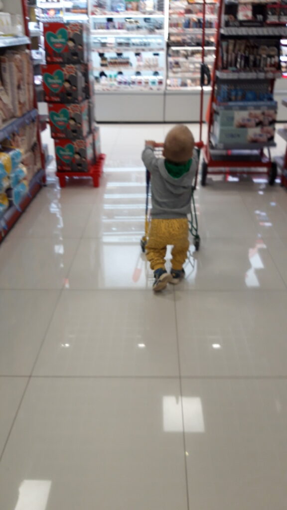 Délután jó nagyot aludtam majd miután megjött Apa közösen elmentünk bevásárolni. Szerencsére a boltban rám is gondoltak így jutott nekem is a máretemnek megfeleleő bevásárló kocsi.
