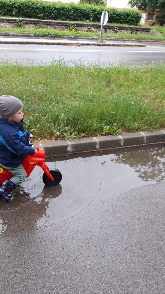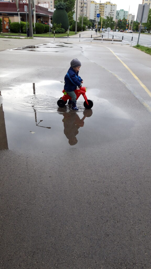 Szerencsére még a nagy csip csöp elött hazaértünk. Sőt észre sem vettem mert a délelötti program miatt jól kifáradtam. Ébredés után egy kis tóra energia adag magamhozvétele után a tócsákkal is megküzdöttem. Meg is mutattam Roncsi haveromnak merre hol vannak az izgalmas tócsák.